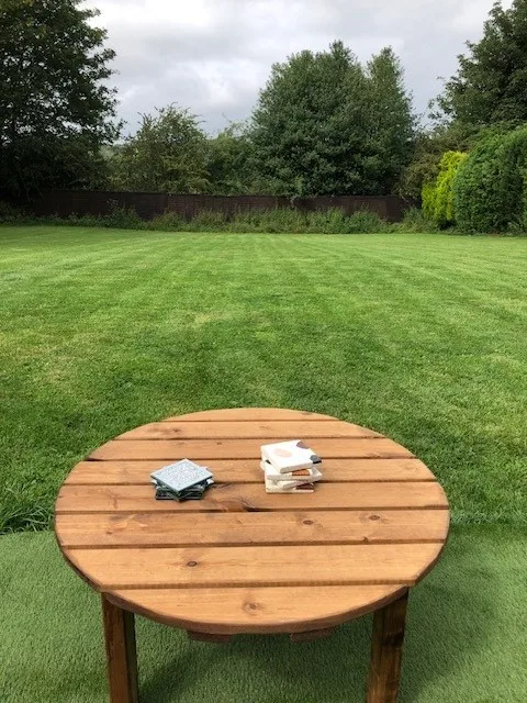 A half size chest freezer is situated under cover on the decking.